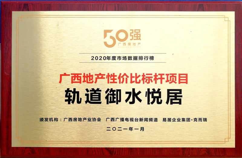 • 軌道御水悅居獲得廣西地產(chǎn)性價比標(biāo)桿項目稱號