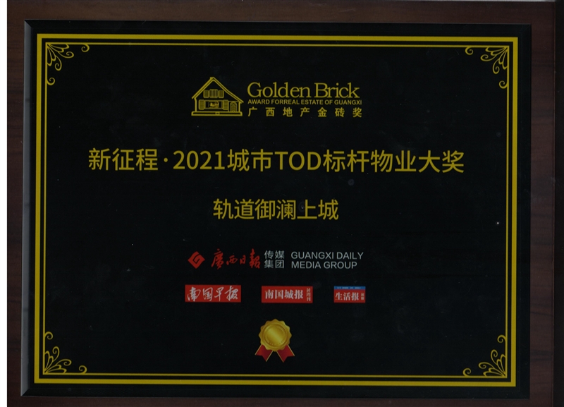 • 軌道御瀾上城項目獲得廣西地產(chǎn)金磚獎“新征程·2021城市TOD標(biāo)桿物業(yè)大獎”