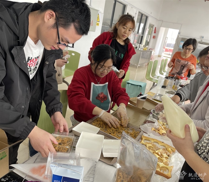 活動現(xiàn)場,由愛好烘焙的同事指導(dǎo)大家制作蛋糕、蛋撻、肉松小貝、雪媚娘、珍珠奶茶等美食,有“斤斤計較”分配食材的、有“認(rèn)認(rèn)真真”研究烤制時間的、有“切切察察”切分水果的……一番忙碌之后,一個個美觀、美味的蛋糕、蛋撻等陸續(xù)呈現(xiàn)在大家的面前。整個活動現(xiàn)場彌漫著濃郁的香甜氣味,大家品嘗著自己的勞動成果,洋溢著陣陣的歡聲笑語,充滿著快樂和幸福的味道。