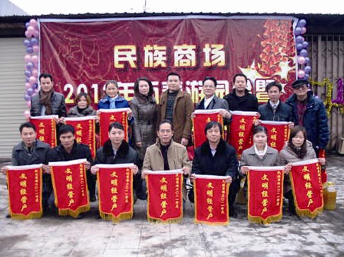 2012年1月6日下午,商場五樓天面人聲鼎沸、喜氣洋洋,商場全體員工與商場幾百名經(jīng)營戶歡聚一起,成功舉辦了商場2012年度迎春游園會暨2011年度文明經(jīng)營戶表彰大會,楊錦清、鄧振芬等15名商場文明經(jīng)營戶獲得了表彰。